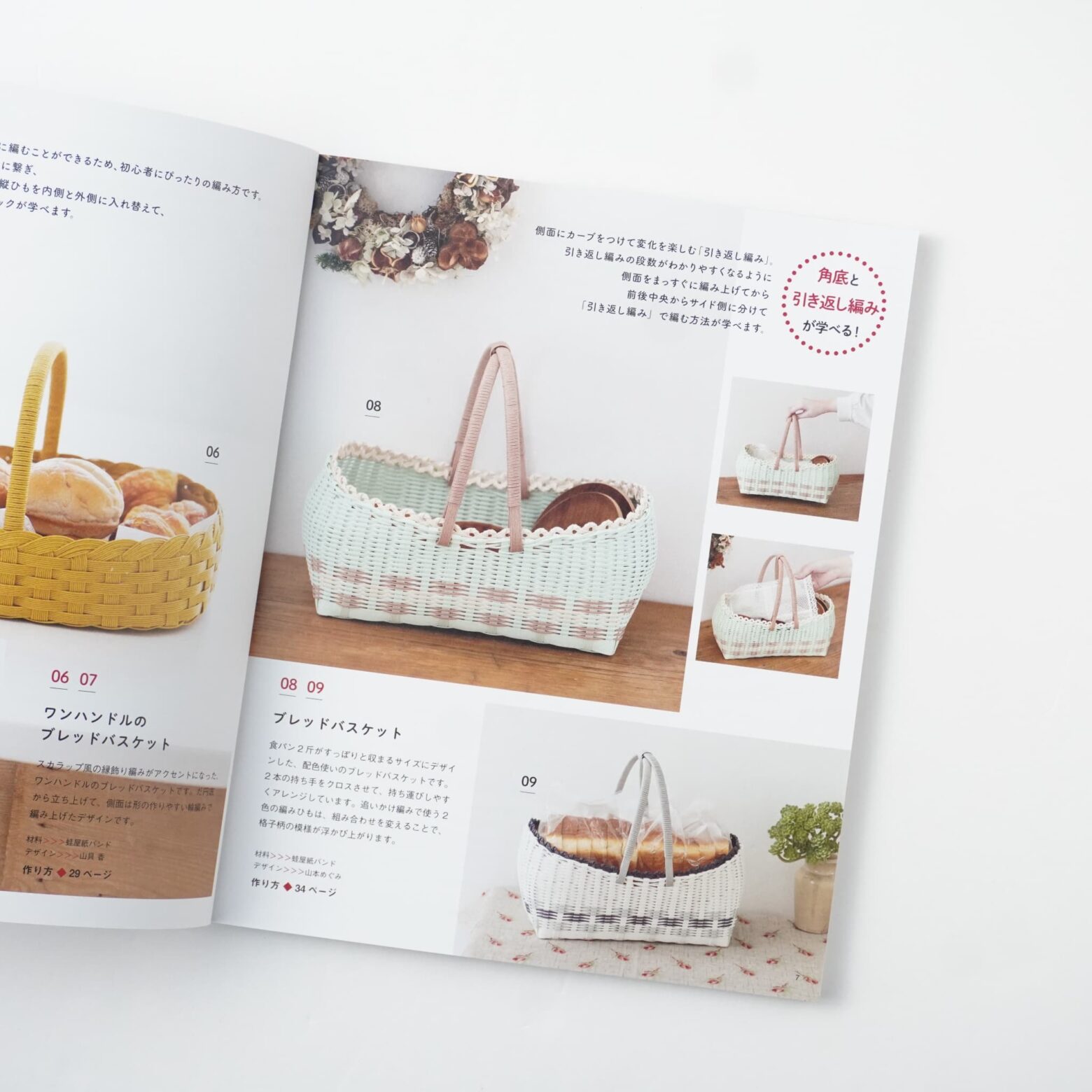 手芸用の紙バンドを使って作る、かごバッグやサコッシュ、ブレッドバスケットなどの基礎がしっかりと学べる、保存版の一冊。