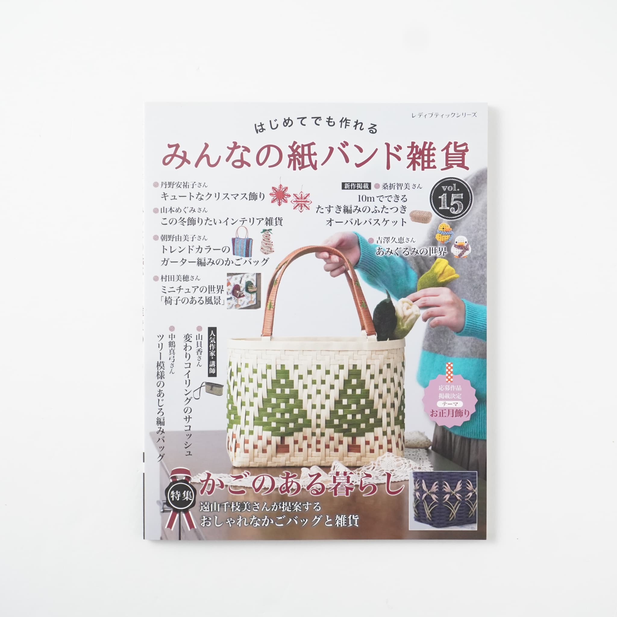 初心者でも楽しめる人気講師の簡単レッスン、繊細なミニチュアの世界、この冬持ちたいかごバッグや季節を楽しむ雑貨など、盛りだくさんのテーマで紙バンド手芸の魅力が満載の一冊です。
