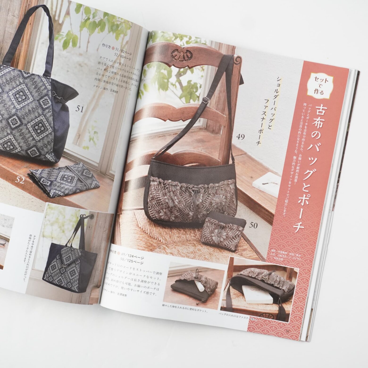 人気の着物のリメイク服、帯リメイクバッグ、古布で作る暮らし着や小物類も充実しています。