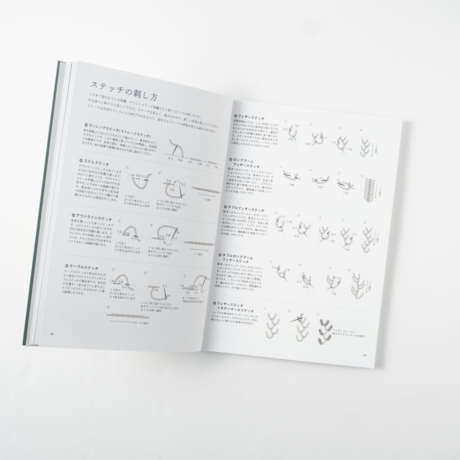 厚手のコットンの布にコットンの糸で刺し、他の白糸刺繍のように穴を開けたり糸を抜いたりという繊細で高度な技術は使わない、日常使いをするための刺繍です。さまざまなステッチを使って自然を描くため、本にもたくさんの種類のステッチを掲載しているのでしっかり勉強になります。周囲にフリンジがつくタイプがあるのも特徴です。