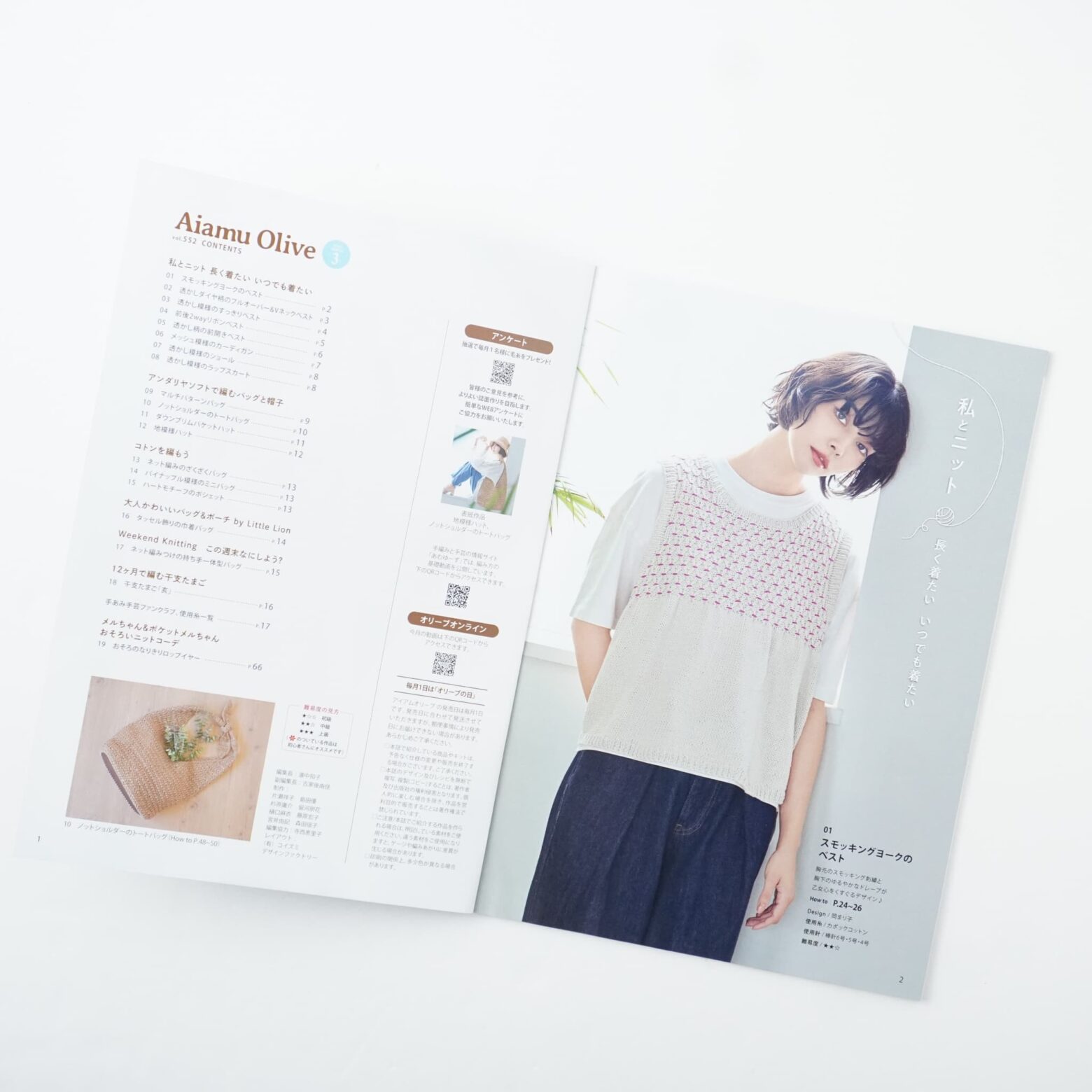TOP BOOK ニットウエア BOOK 2026.4.1 アイアムオリーブ 2026年3月号 編集 ハマナカ株式会社 出版社 ハマナカ株式会社価格 352円(税込)発売日 2026/03/01ページ数 66ページ判型(サイズ) A4判 書籍紹介アイアムオリーブは、本格的なニットウェアから、マフラー・ストール・帽子などのこもの、 かわいい手芸やインテリアこものなど、季節を先取りした作品を毎月20点ほど紹介する手芸のレシピ本です。販売サイトハマナカ商店 ◎こちらの動画で中面の一部をパラパラとご覧いただけます。 2026年3月, あみもの, ニットウエア, ハマナカ, 小物, 編み物