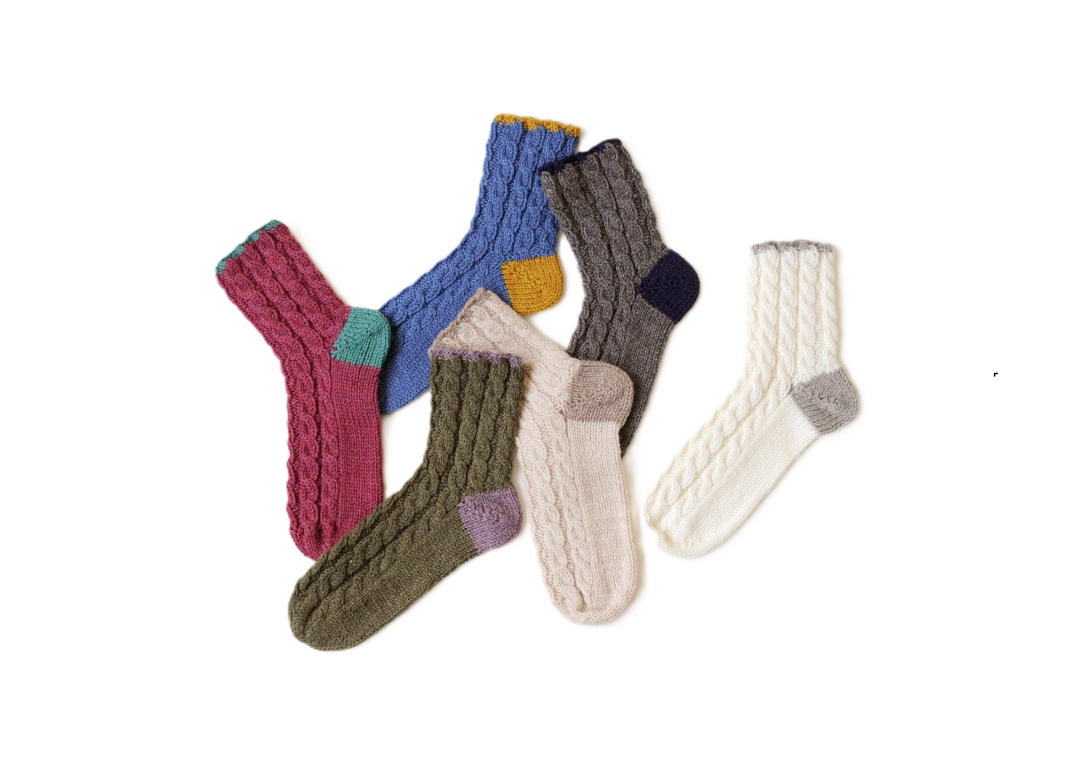 編み心地に加えて、豊富なカラーバリエーションも魅力。アメリーのカラーリストはなんと52色!(2025年10月現在)。パキッとしたビタミンカラーからメランジェ調のニュアンスのある色まで、色数の多さと色彩幅の広さに驚きます。それもそのはず、色を監修したのは、ニットデザイナーの風工房さん。単色使いはもちろん、細かな伝統柄の編み込み模様や微妙なグラデーションのある柄にも向いているので、自分好みの色や組み合わせを探してみるのも楽しそうですね。