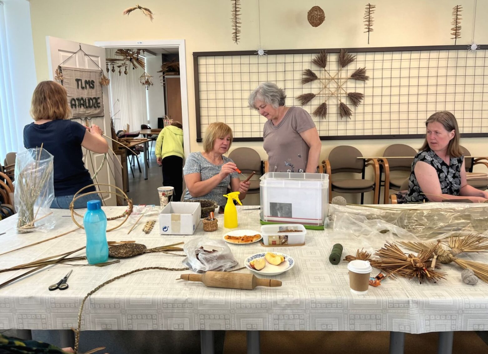 10年以上前、私はラトビアで暮らしていたのですが、当時、毎週通っていた場所がありました。それは、Tautas lietišķās mākslas studija “Ataudze”で、訳すと「民俗工芸工房“アタウゼ”」。著書「持ち帰りたいラトビア」でも紹介しましたが、このTautas lietišķās mākslas studija(以下、TLMS)というのは、編み物、バスケット作り、織物といった手工芸の種類別にラトビア全土で結成されているサークルのような集まりで、ビギナーも熟練者もレベルを問わず、毎週メンバーが集まってその技を切磋琢磨しあっています。 「TLMSアタウゼ」は、1969年に結成された歴史あるグループで、柳の枝やトウヒの根、Meldri(メルドゥリ)というイグサを太くしたような植物を使い、オーナメントや小物入れ、帽子といった編み細工を行っています。