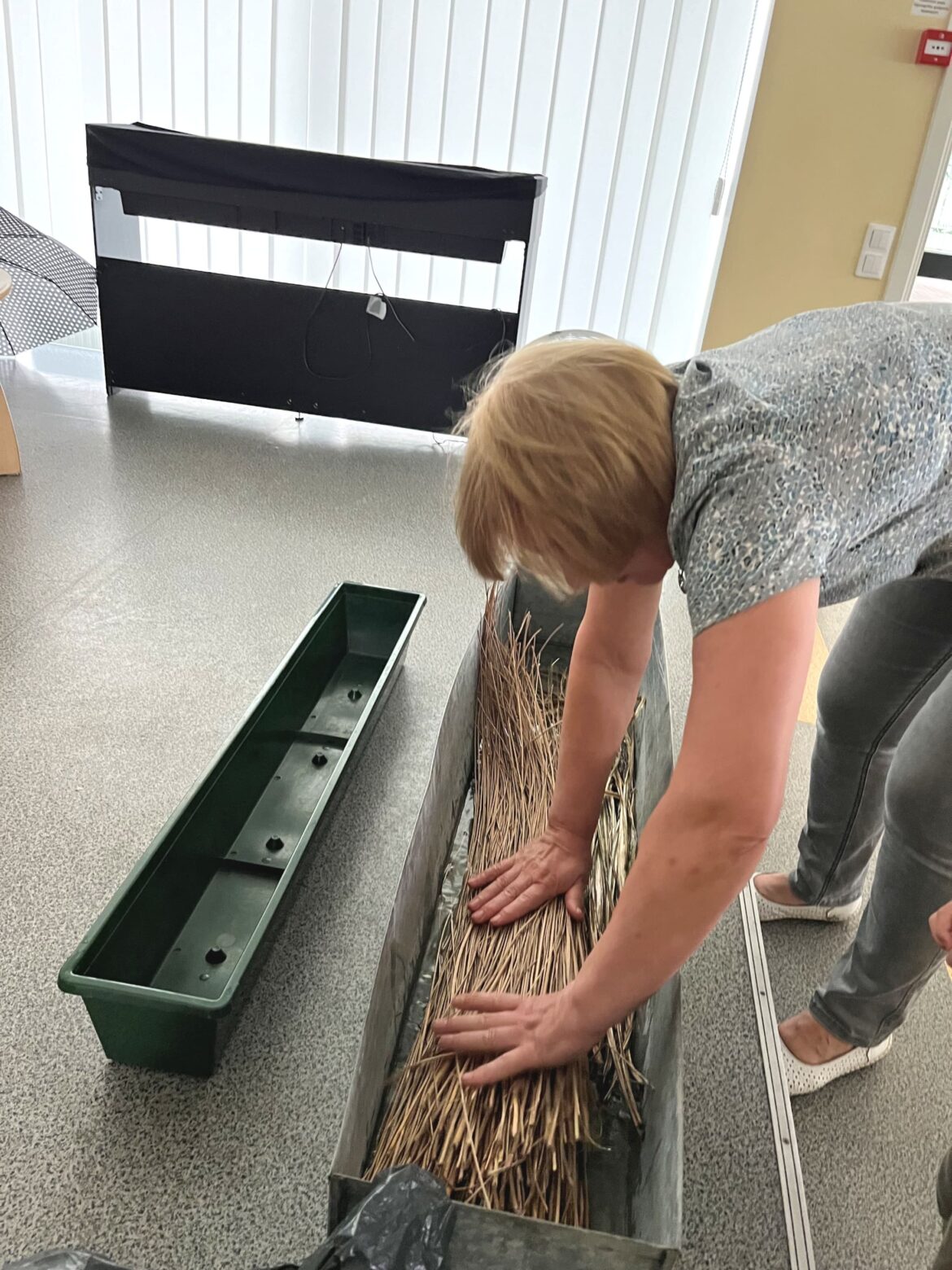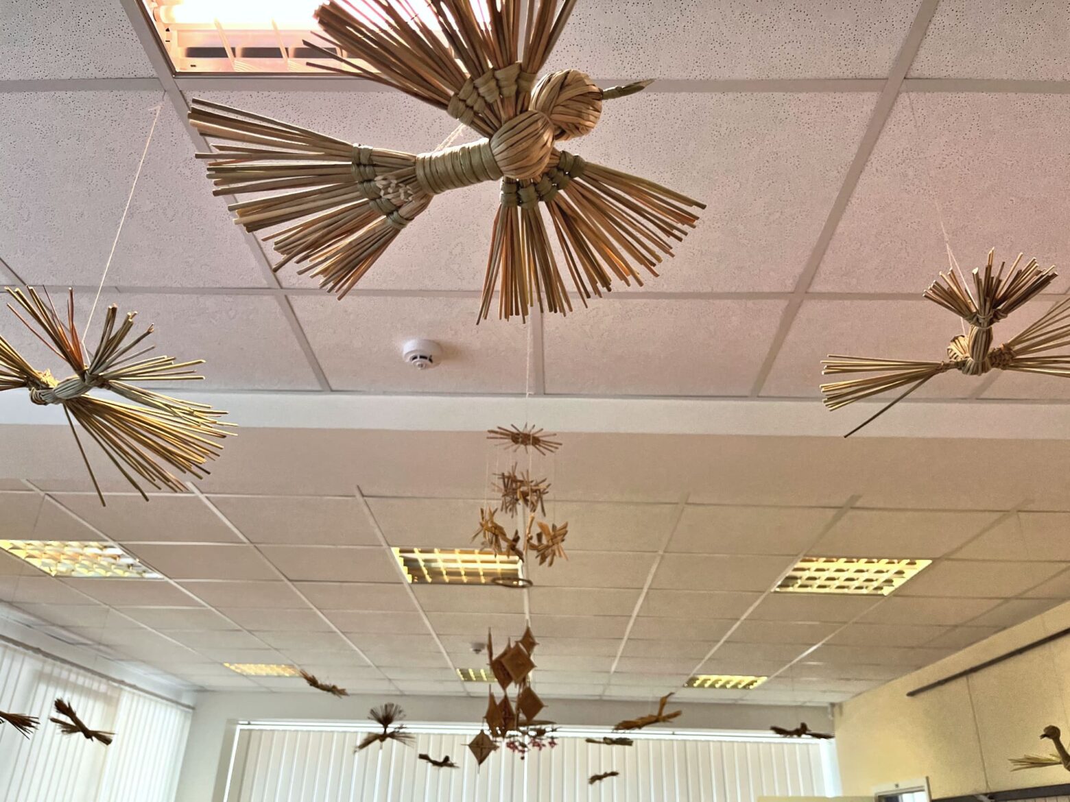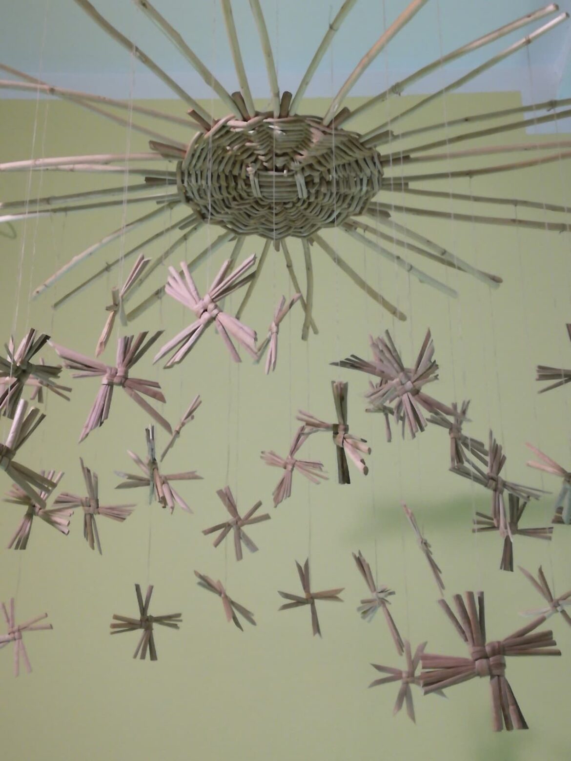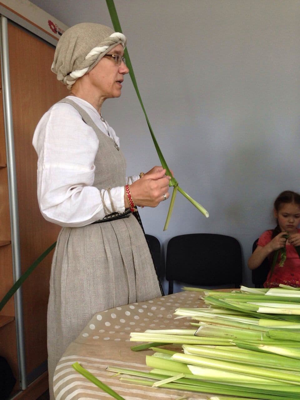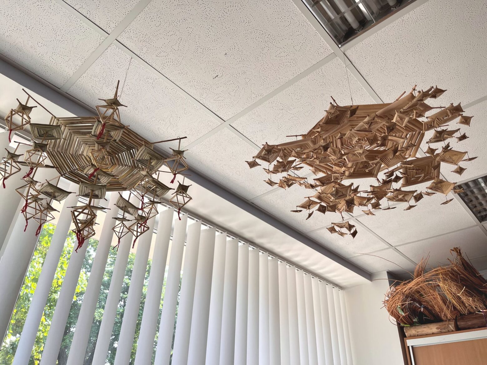 イネタ先生にとって、最初は趣味として始めた編み細工でしたが、何年かのちには仕事に変わり、小学校で生徒の編み細工クラブの指導をするようになったそうです。子どもたちはそれぞれ創造力豊かなアイデアがあり、多様性を好んだので、それをどう形にするかを考える手助けに奔走したといいます。そしてある時、当時「TLMSアタウゼ」のリーダーだったイヴェタ先生が育児休業に入ったので、そのピンチヒッターを務めることになり、そのまま正式な指導者となりました。
