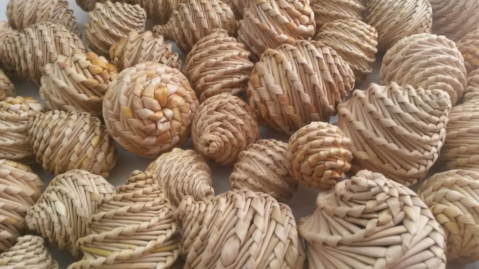 収穫後には、乾燥させてきれいに洗い、仕分けるという長い作業工程が待っています。冬季になり、編み細工を始める際には「メルドゥリ」を再び水に浸すのですが、そうすると夏と海の香りが再び室内に流れ込んでくるそうです。そして編み細工をしながら、自分の作品がどこにたどり着くのだろうかと考えを巡らせるそう。親しい友人や親せきの子どもたちのもとへ、または展示会へ、もしかしたら外国へ旅立つかもしれない、と。そして、たどり着いた先での自分の作品の様子、すなわち、赤ん坊がガラガラで遊んでいる写真や、オーナメントが室内で飾られている写真が届いたり、どのように役立っているかという話を聞くと、たまらなく嬉しい気持ちになるそうです。