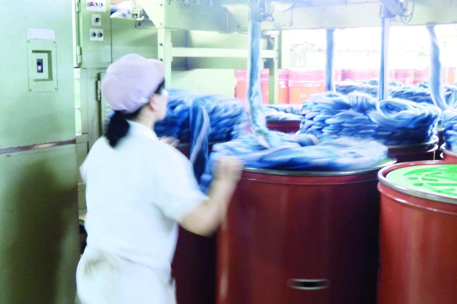 この工場の作業はここまで。ウールトップは京都の染色工場へ運ばれます。