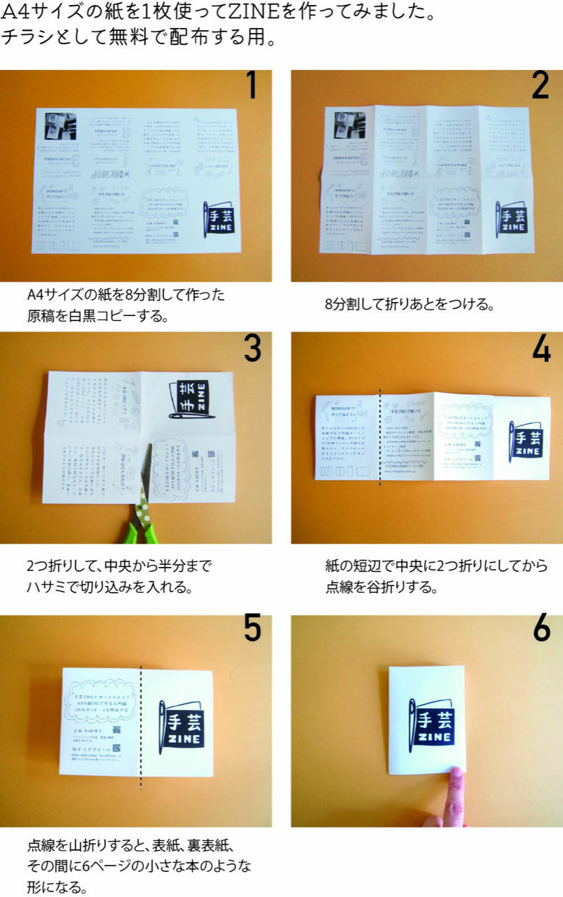 一般的な手芸本が100ページ前後ならば、まずは、100分の1 のサイズのZINE作りで本づくりのプロセスを体験してみる。小さなサイズやページで自ら編集、デザイン、撮影、印刷、販売まで行うZINEづくりの経験が、いつの日かの本づくりに役立つ人もいるかもしれません。