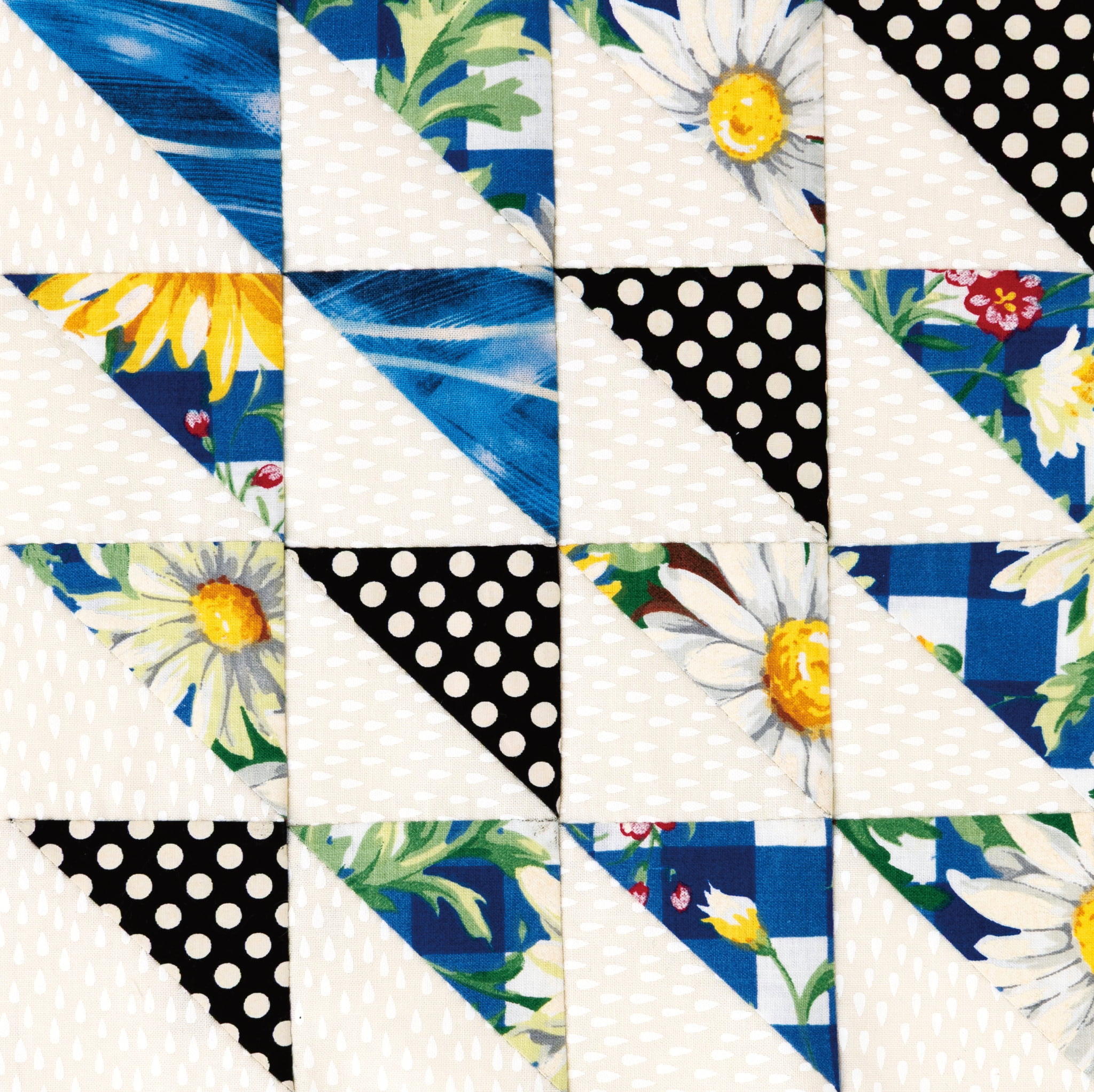 同名のパターンは数多くあり、三角形でノコギリの歯のギザギザを表すものがほとんど。このパターンは三角形1種を32 枚用意し、4列のブロックにして合わせる。作りやすく初心者向き。同名パターンが8月8日にあり。