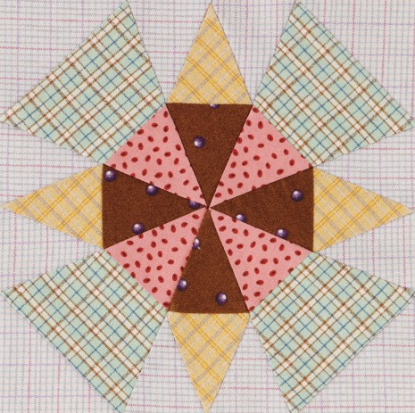 パターンの中に4つの矢が現れるように配色するのがコツ。1930 年ごろのパターンで、複数枚つなげると思いもかけない二次的な模様が現れる。別名「コロラドの矢尻」「ベティの選択」など。